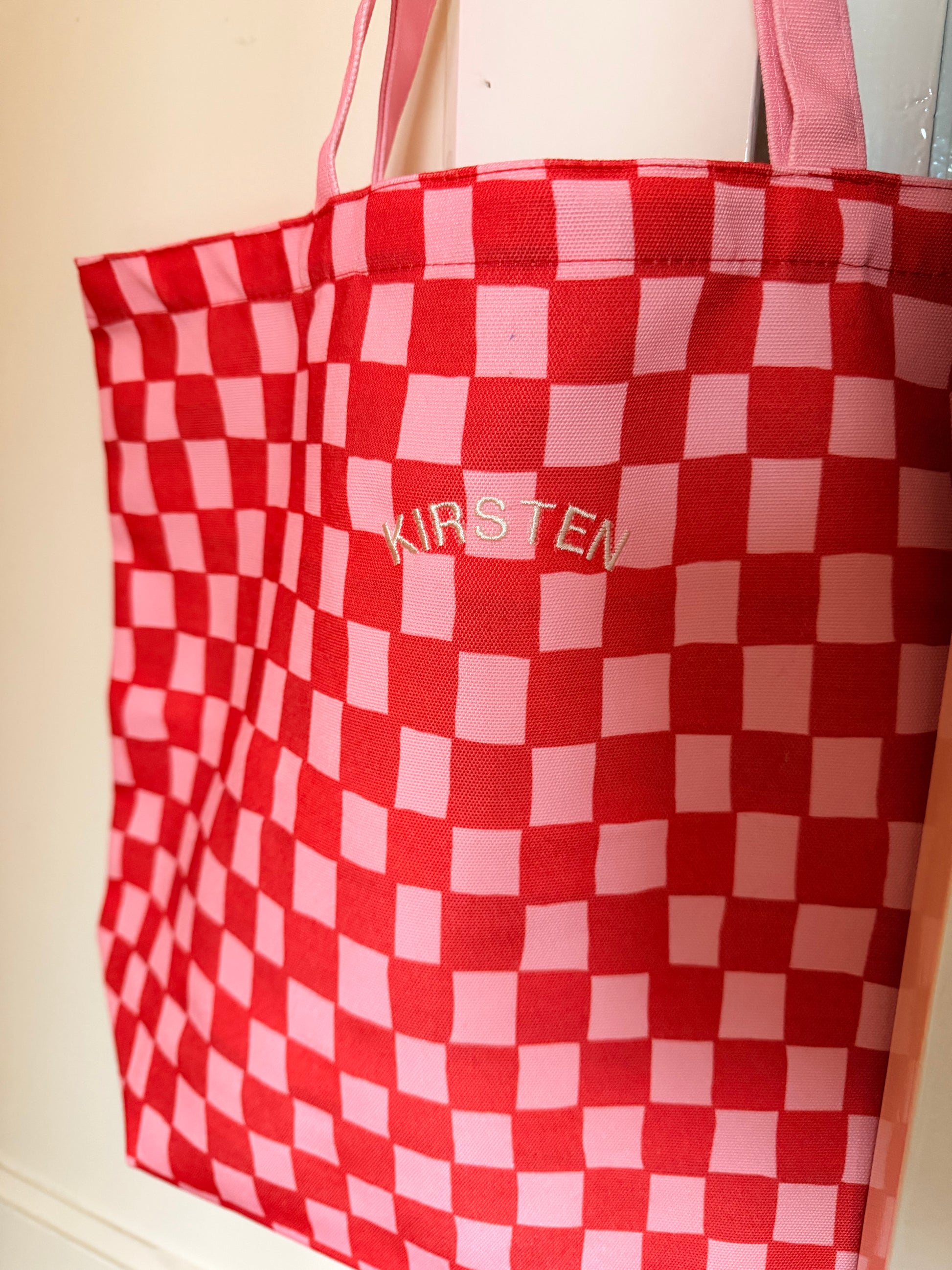 Je kan de tas personaliseren met een geborduurde naam/woord.
